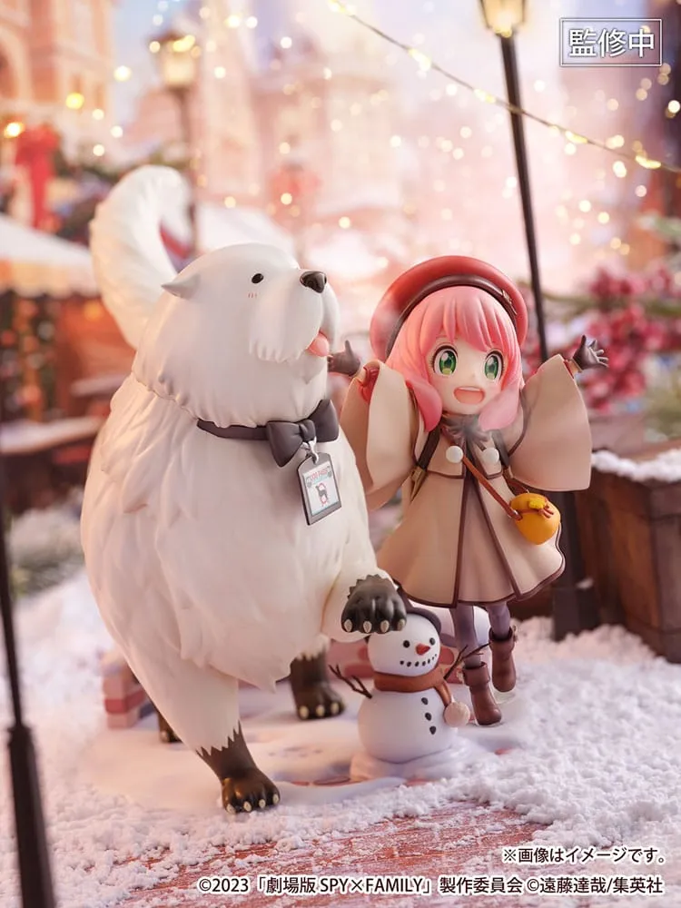 Diese detailreiche ca. 20 cm große Anime Figur von Anya und ihrem Hund Bond Forger ist in einem Maßstab von 1:7. Sie stammt aus dem beliebten Anime Spy x Family und wurde von eStream gefertigt. Die PVC Figur zeigt die beiden Charaktere Anya und Bond glücklich im Schnee mit einem kleinen Schneemann vor ihnen. Die Figur wurde mit wunderschönen Details angefertigt.